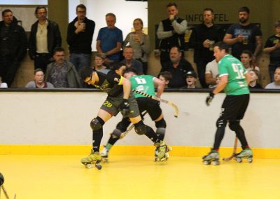 Nach dem Seitenwechsel nahm die Partie deutlich an Intensität zu. Kilian Hagspiel auf Dornbirner Seite sowie Patrick Moor bei den Gästen mussten nahezu zeitgleich mit einer blauen Karte vom Feld, doch im anschließenden 3-gegen-3 blieb ein weiterer Treffer aus. Dornbirn verlor zunehmend den Spielfluss, während Vordemwald mutiger wurde. Zehn Minuten vor dem Ende verkürzte Ryan Kaeslin auf 3:2 und machte die Begegnung wieder spannend. In der Schlussphase setzte Vordemwald alles auf eine Karte, ersetzte den Torhüter durch einen zusätzlichen Feldspieler, wurde jedoch durch eine Zeitstrafe gegen Marc Werner ausgebremst.